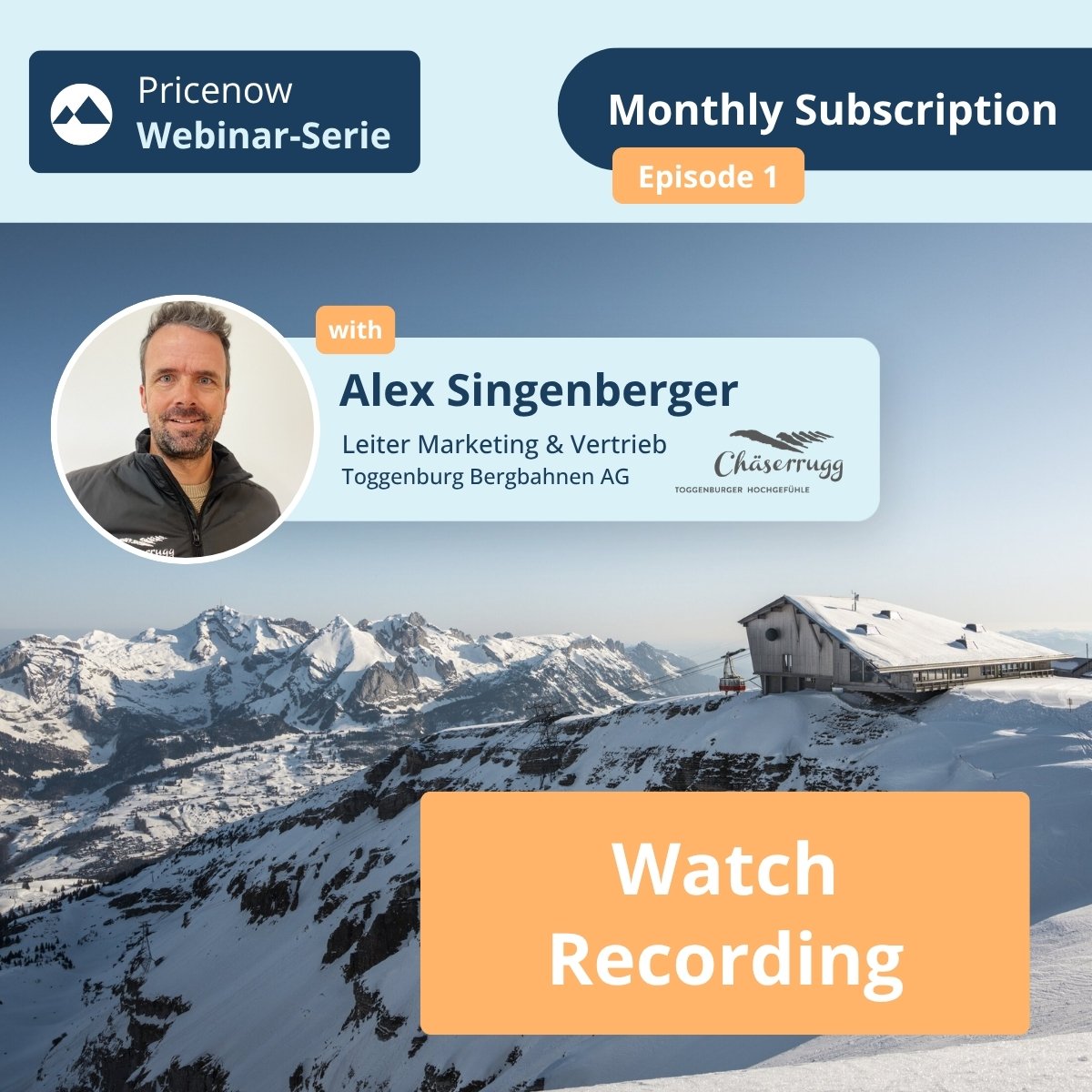 Subscription instead of annual subscription: Alex (Chäserrugg) & Reto (Pricenow) show in the webinar why monthly payments change guest behavior and what that means for experience providers.